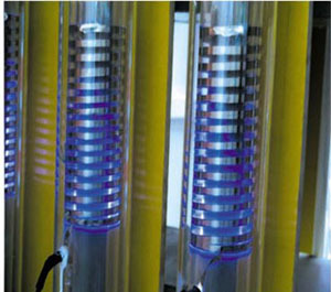 20世紀80年代初期日本、美國的學者(zhě)最先提出了脈衝電暈產生常壓非平衡等離子體的方(fāng)法。該方法是利用高能電子的作用激發氣(qì)體分子,使其電離或(huò)離解(jiě),並產生強氧化性的自由基。脈衝電暈放電采用窄脈寬高壓電源供能,脈衝電壓的上升沿極陡(上升時(shí)間(jiān)為幾十至幾百納秒),峰寬較窄(zhǎi)(幾微秒內),在極短時間的(de)脈衝時間內,電子被(bèi)加速而成為高(gāo)能電子,而其他質量較大的離子由於慣性作用在脈衝瞬間來不及被加速而基本保持靜止。因此放電所提(tí)供的能量主要(yào)用於產生高能電子,能量效率較高。與直流電暈放電法相比,此法還具(jù)有以下優點:可以在較高的脈衝電壓下操作,不(bú)像直流電暈(yūn)放電那樣,容易過渡(dù)到火花放電,因而可提供比直流電暈放(fàng)電高幾個數量級的活(huó)性離子濃度;在高電壓(yā)作用下,電暈區較大而且放電空間電子密度較高(gāo),同時空間電荷效應也使電(diàn)子在反應(yīng)器內分布趨於(yú)均勻,所以其活性空間也比直流電(diàn)暈放電大得多;電子密度大(dà),分布廣,反應(yīng)器可以設計(jì)為較大空間,允許較寬的(de)反應器製造誤差。由於脈衝電暈放電具有這些優點,所以它在氣(qì)汙染物淨化方麵具有更強的應(yīng)用前景。