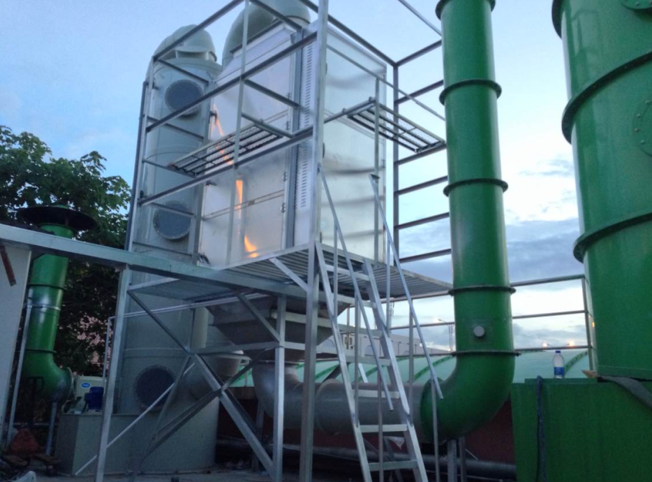 由(yóu)於業主廠區臨近居民區,因(yīn)此係統的設計處理能力不能夠僅僅滿(mǎn)足於國(guó)家排放標準(zhǔn),而是完全消除異味,還周邊老百姓一(yī)份潔淨的空氣。 從節約投資成本考慮,廢氣首先進入雙氧水氧化塔,處理率>35%;然後進入光催(cuī)化設備,去除率>85%;最(zuì)後進入堿(jiǎn)噴淋塔,將酸性因子水相吸收,去除率>35%;項目(mù)整體去除率>93%;廢氣濃度廠界值<0.1ppm,完全無異味。